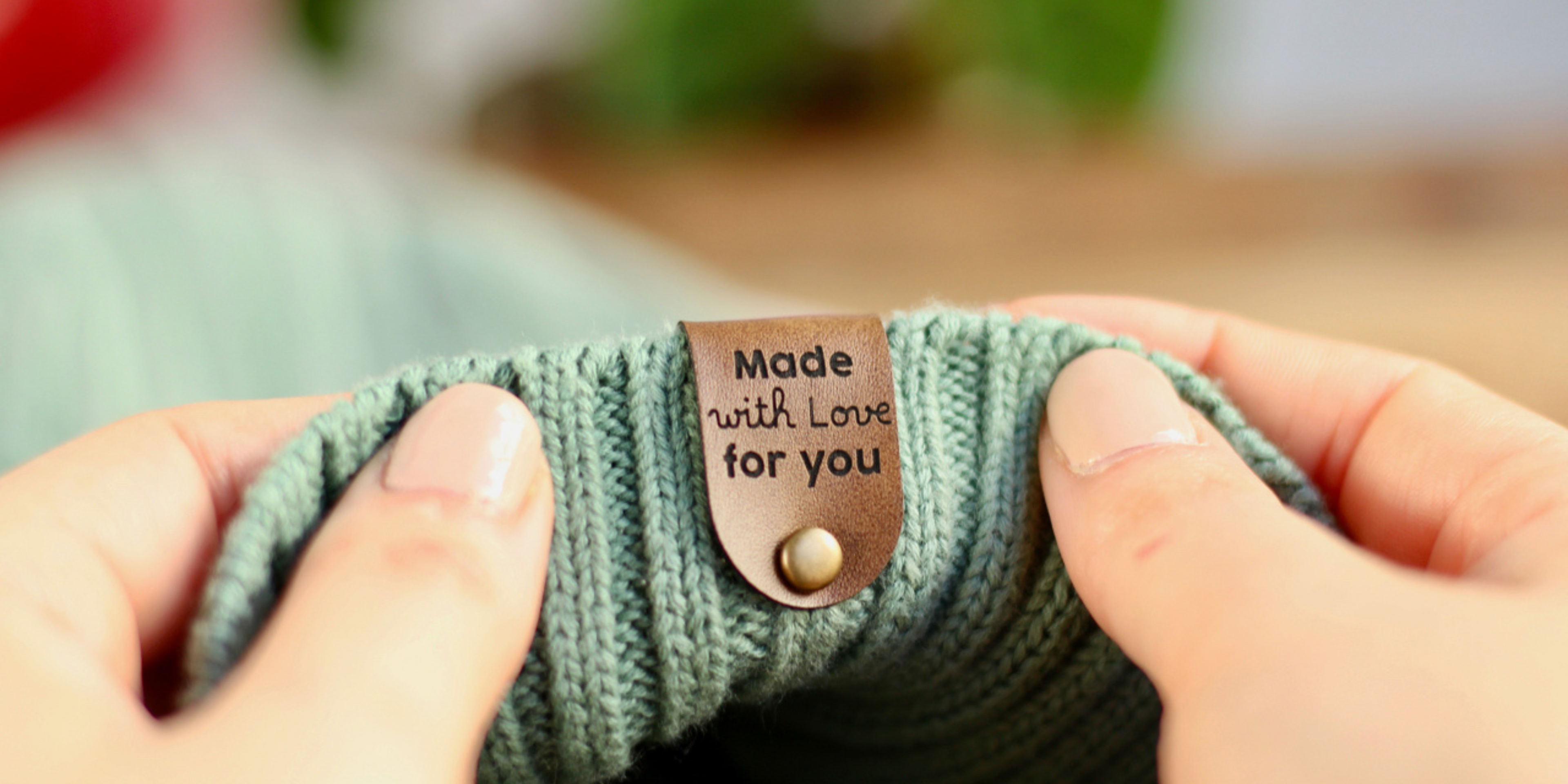 Custom Faux Leather Tags for Knits & Crochet – Foldable – 2.85x0.55”